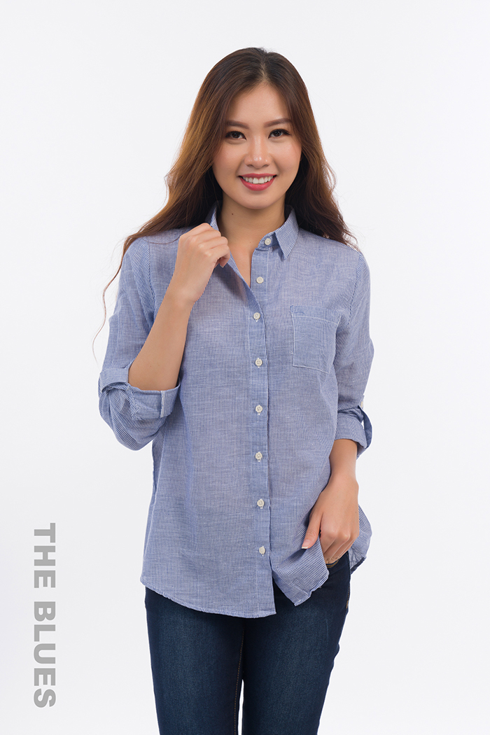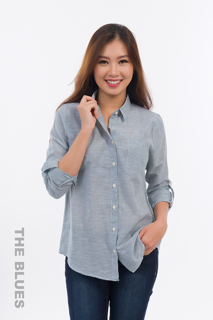 Áo sơ mi dài tay của thương hiệu Blues có tông màu nhẹ nhàng, thanh lịch và chất liệu cotton mềm mại, thoáng mát, mang đến vẻ đẹp trẻ trung, thanh lịch và hiện đại cho các quý cô công sở.