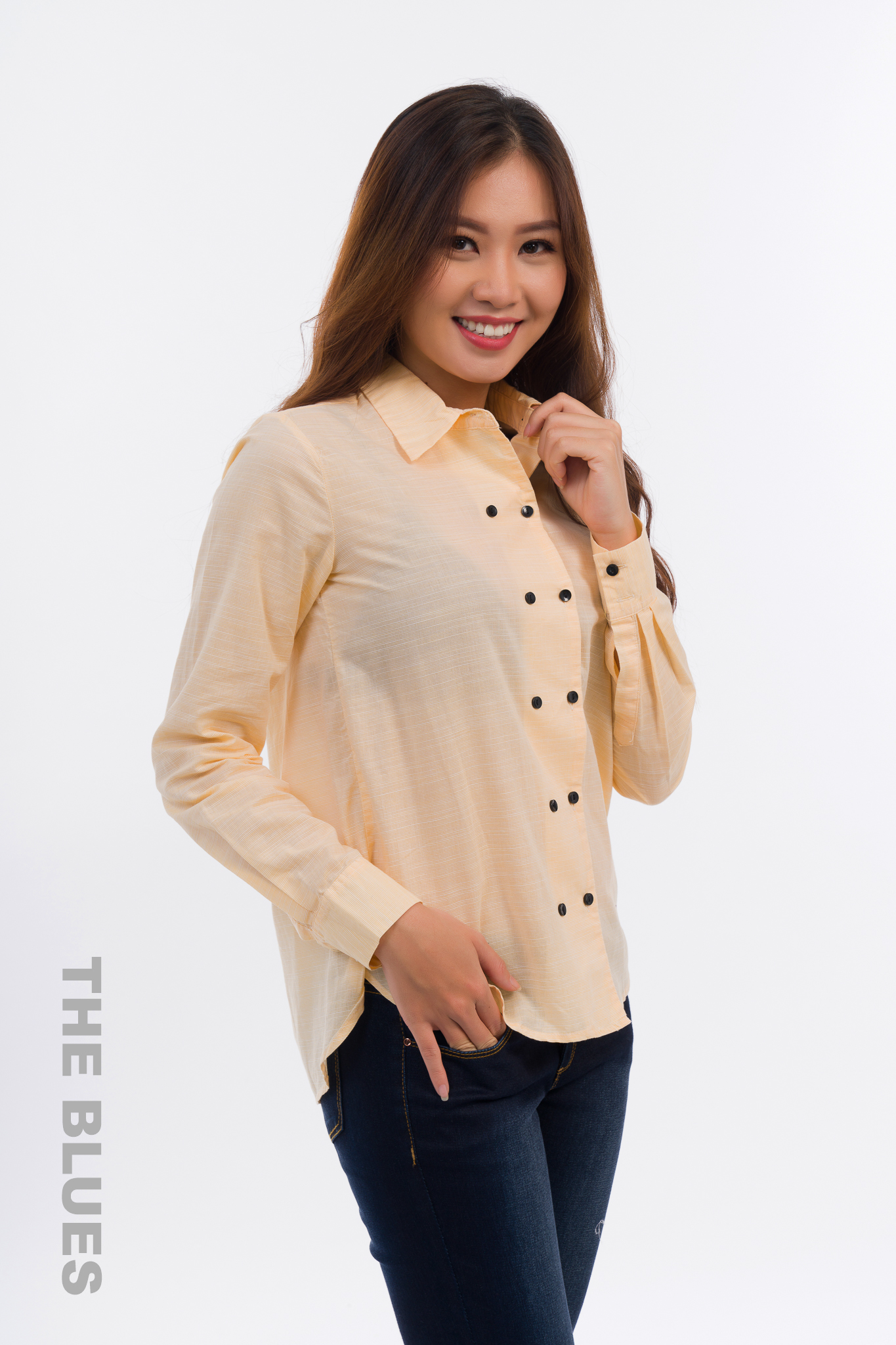Thanh lịch và duyên dáng khi khoác lên mình chiếc áo sơ mi của thương hiệu The Blues. Kiểu dáng đơn giản mà không kém phần duyên dáng. Với chiếc áo này bạn có thể tha hồ mix với các trang phục và phụ kiện khác nhau để tạo phong cách riêng mình.