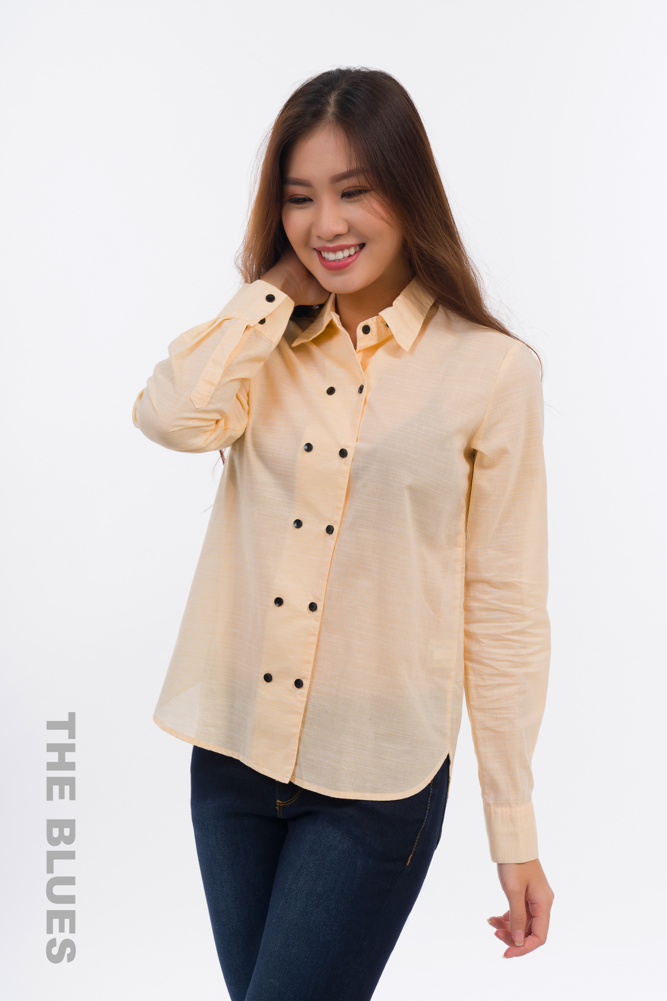Long-sleeved T-Shirt from The Blues brand, using thick smooth fabric and simple design, exuding grace, lightness and sophistication.